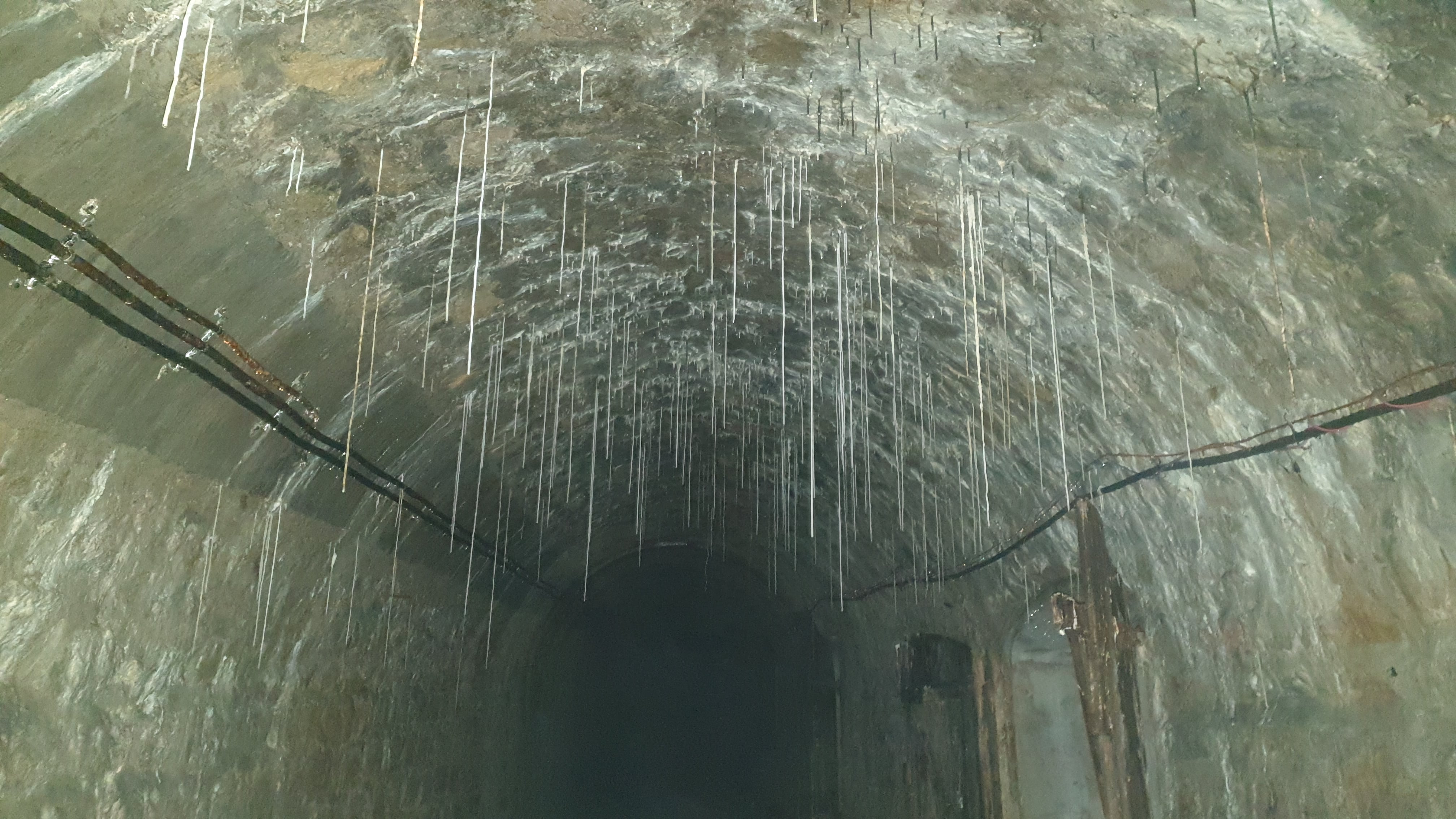 - le profil, l'étanchéité et la liaison avec le massif de béton cyclopéen de la dalle supérieure doivent être affinés pour limiter les infiltrations. Une margelle bétonnée doit être ajoutée en bordure de visière pour limiter la chute de gravats et un ressaut en bas de bloc pour empêcher l'accumulation des gravats au pied de celui-ci,
