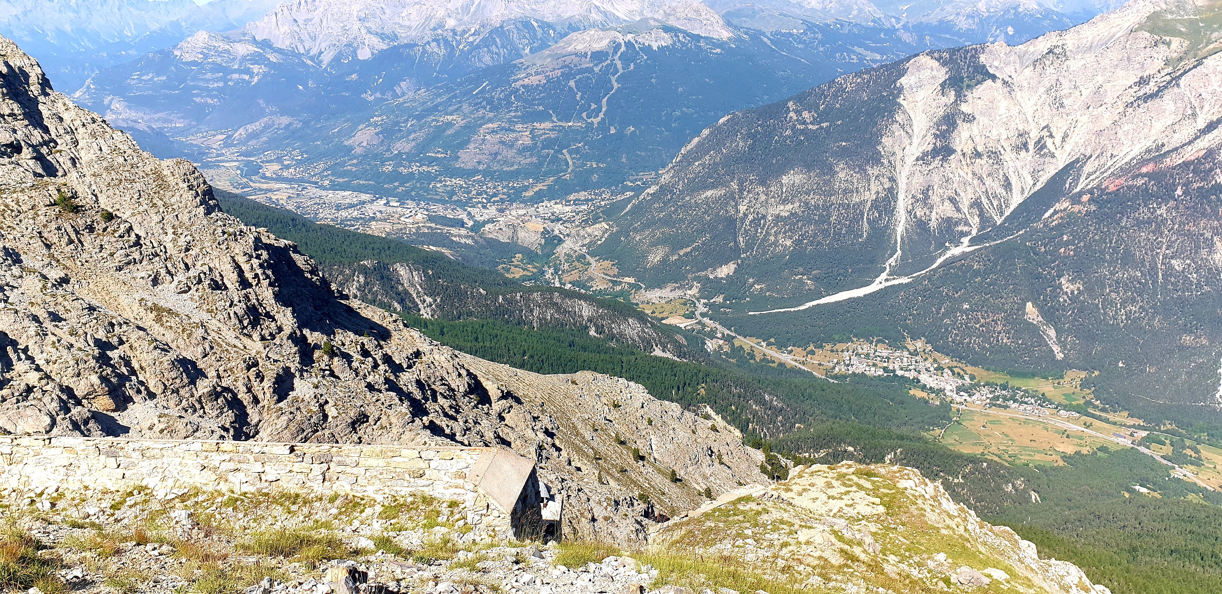 Implanté sur la crête de Château Jouan, aux coordonnées 44.911431 - 6.710501, l'ouvrage domine à 2465 mètres d'altitude :