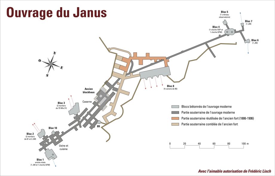 L'ouvrage du Janus est une fortification d'artillerie CORF comprenant sept blocs et une entrée principale. Il possède deux blocs cheminée qui permettent l'évacuation des gaz de l'usine et de l'air vicié. Construit sur le site du fort Séré de Rivières du Janus, érigé entre 1876 et 1890, l'ouvrage conserve le bloc 8, modernisé en 1906.