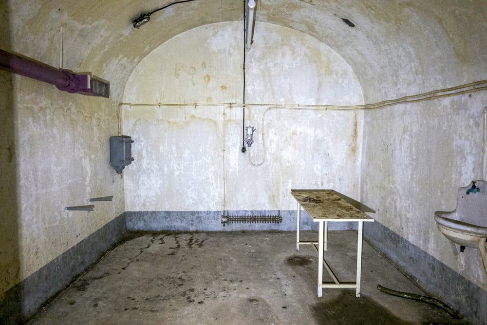 La CORF a par ailleurs regretté que les citernes d'eau aient été prévues trop éloignées de l'entrée et des locaux d'utilisation, mais cela a été accepté en raison de la réutilisation d'une citerne existante et de l'exiguïté de l'arête, interdisant d'ajouter d'autres locaux. D'autres modifications de détail ont été requises sur les circuits d'eau et d'égout. Cette partie concernant les locaux a été approuvée le 7 novembre 1932 (DM 4822 2/4-S), alors que les travaux souterrains étaient déjà bien avancés.